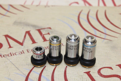 Lot Of 4 Unbranded Microscope Lens 4/0.1, 100/1.250il ,10/0.25 And 40/0.65