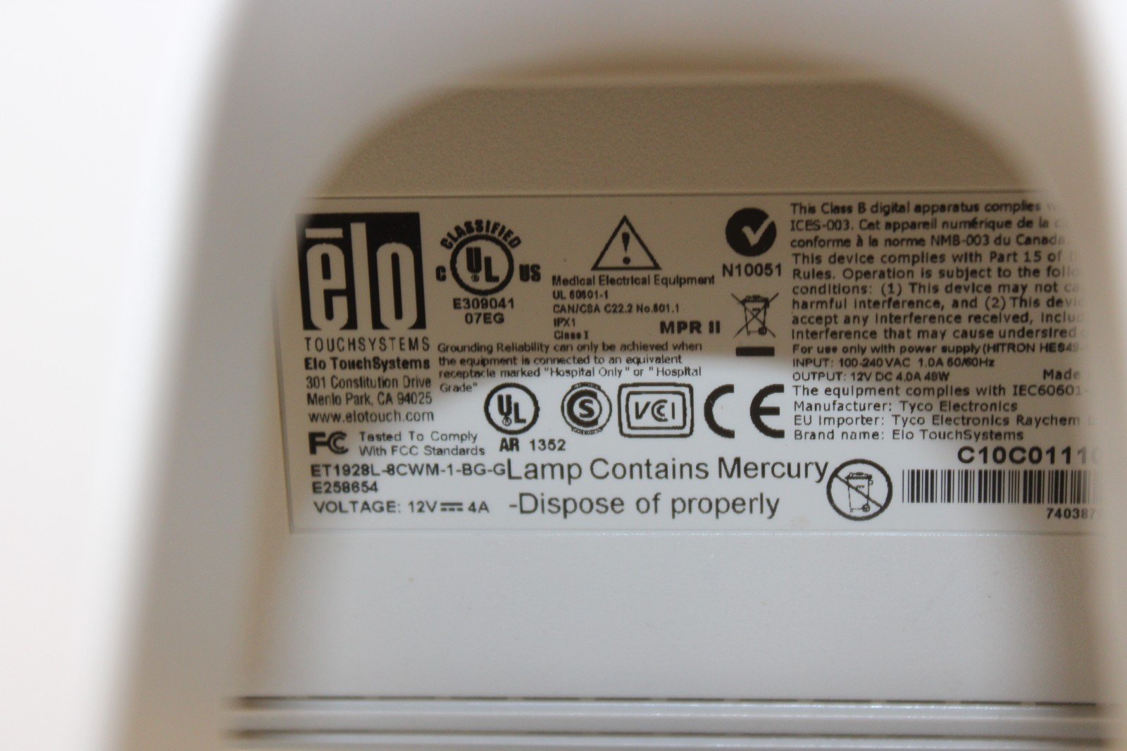 Elo ET1928L-8CWM-1-BG-G Touchscreen Monitor With Stand