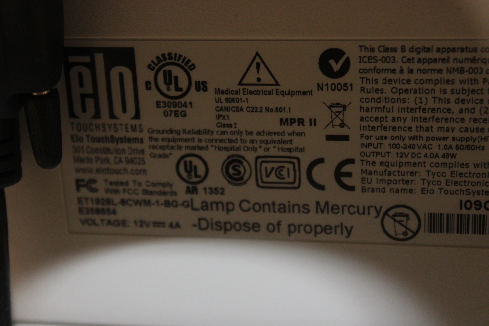 Elo ET1928L-8CWM-1-BG-G Touchscreen Monitor With Stand