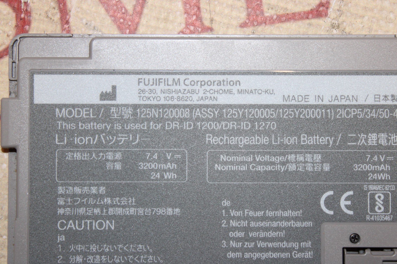 Fujifilm 125N120008 Rechargeable Li-ion Battery for DR-ID 1200 DR-ID 1270
